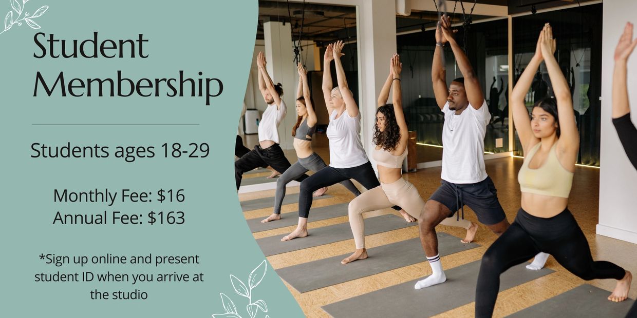 First Month Introductory Offer includes unlimited yoga classes for one month - 50% Discount - Individuals $22, Family $25